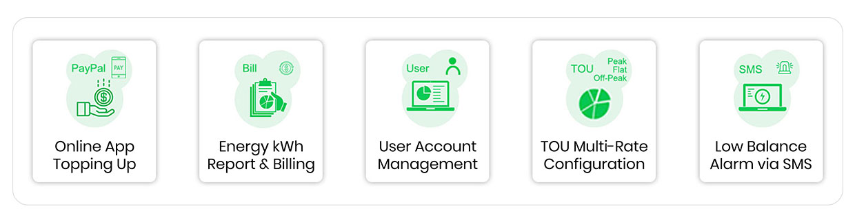 Nella soluzione Acrel IoT EMS Billing, i gestori delle strutture stabiliscono tariffe TOU di punta, non di punta e fisse, applicano modalità prepagate o postpagate e definiscono soglie di saldo basso. Gli utenti ricaricano tramite PayPal, carta di credito o app mobile; la piattaforma invia automaticamente SMS di allarme, emette fatture in PDF e pianifica la disconnessione remota a credito zero. Dashboard in tempo reale, misurazione secondaria degli inquilini e report energetici configurabili semplificano la conformità ESG e l'allocazione dei costi.