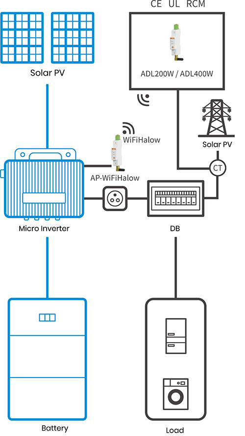| ADL200W | Monofase | 1 o 2 | Wi-Fi Bluetooth | Balcone standard PV, antireflusso semplice |