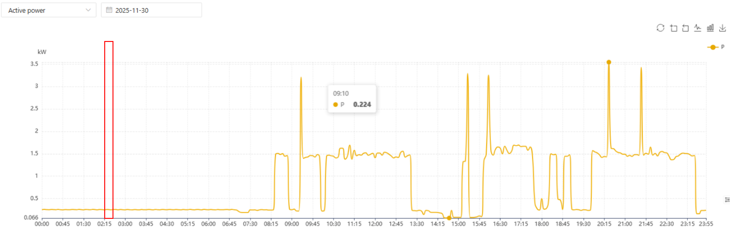 La domanda massima rappresenta il valore di potenza medio più alto registrato durante un ciclo di fatturazione (solitamente un mese) all'interno di questi intervalli di domanda. Sebbene l'intervallo standard sia di 15 minuti, può variare in base al servizio o alla regione.