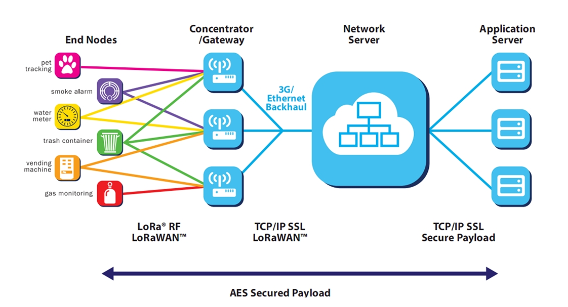 LoRa supporta la comunicazione punto a punto e il networking a stella e realizza la raccolta e l'inoltro centralizzati di dati da più nodi tramite dispositivi gateway.