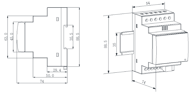 | Alimentazione//switching output//current input and voltage input between two two AC2kV 1min. | ||||