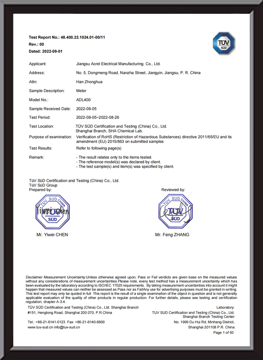 L'impianto di produzione dell'azienda, Jiangsu Acrel Electric Manufacturing Co., Ltd., aderisce a rigorosi standard di qualità e linee guida ambientali, con centri di test avanzati e un impegno verso processi di produzione senza piombo. Il team di Acrel, composto da oltre 500 ingegneri, fornisce sistemi di efficienza energetica all'avanguardia e soluzioni energetiche intelligenti.