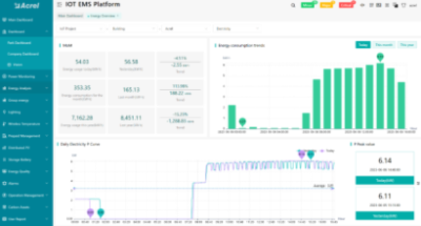 - Sistema cloud IoT EMS: Acrel ha fornito un sistema di gestione dell'energia basato sull'IoT che integra hardware e software per il monitoraggio e la gestione completa dell'energia.