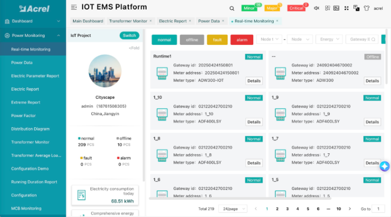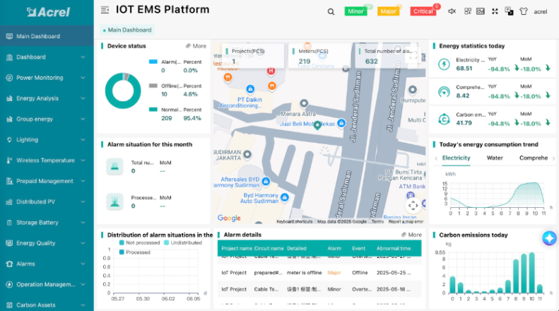 Per consentire il funzionamento remoto e il monitoraggio intelligente, Acrel ha implementato una soluzione integrata che combina il contatore di energia ADW300-4G con una piattaforma IoT, fornendo misurazioni in tempo reale, avvisi di guasto e controllo centralizzato. L'investimento totale del progetto è di circa 200.000 dollari USA.